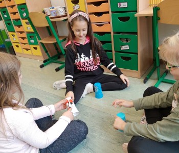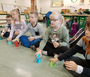 Z okazji tego artystycznego dnia, uczniowie klas 1-3 dowiedzieli się, że można też grać na kubeczkach. ?