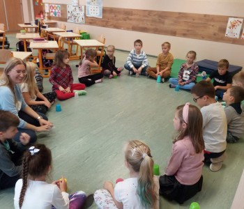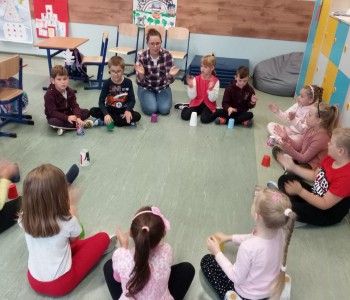 Dzięki inicjatorce, p. Joannie Zaranek – Kaczmarczyk, poznaliśmy ten ciekawy sposób muzykowania. Każda młodsza klasa miała dziś swoją specjalną artystyczną lekcję. Razem z Panią Asią wystukiwaliśmy układy rytmiczne, ucząc się przy tym skupienia uwagi i współpracy. Był to dzień pełen muzycznej atmosfery.