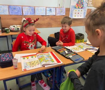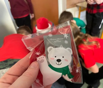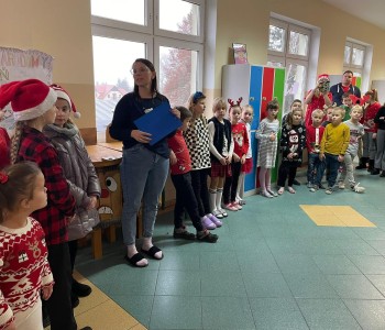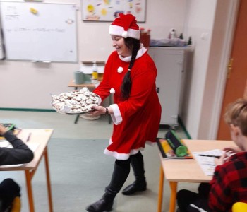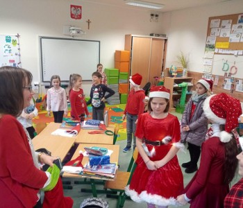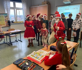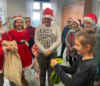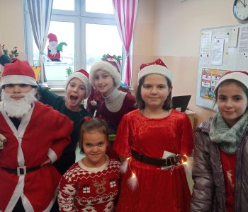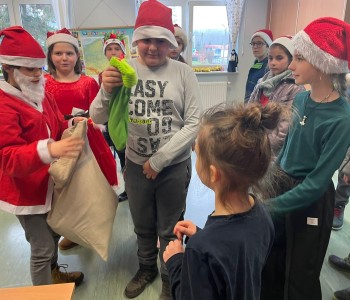 Pomocnicy Świętego Mikołaja z kl.5, w ramach programu SZKOŁA DOBRA przygotowali niespodziankę dla wszystkich.