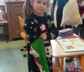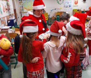 Każda klasa otrzymała skarpetę wypełnioną słodkościami oraz Mikołajkowe życzenia. To był prawdziwie mikołajkowy dzień!