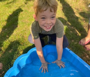 Pierwsze zajęcia z emocji to również zajęcia z integracji sensorycznej w szkolnym ogrodzie.
