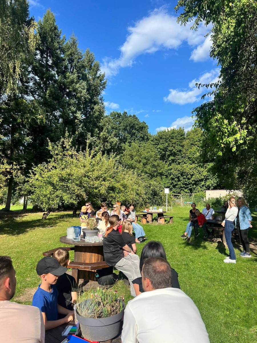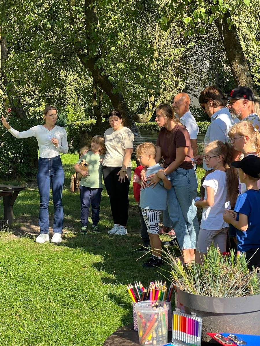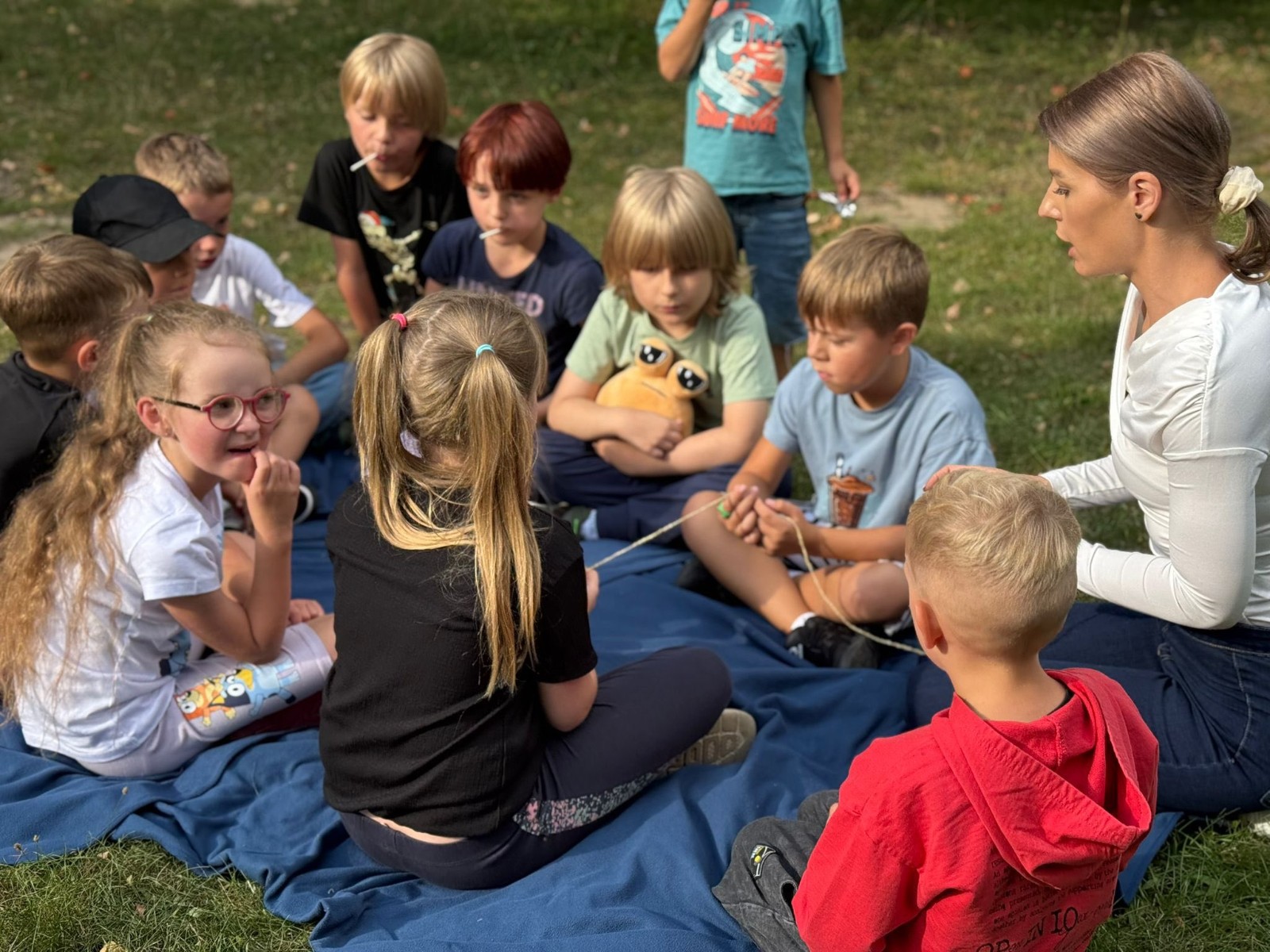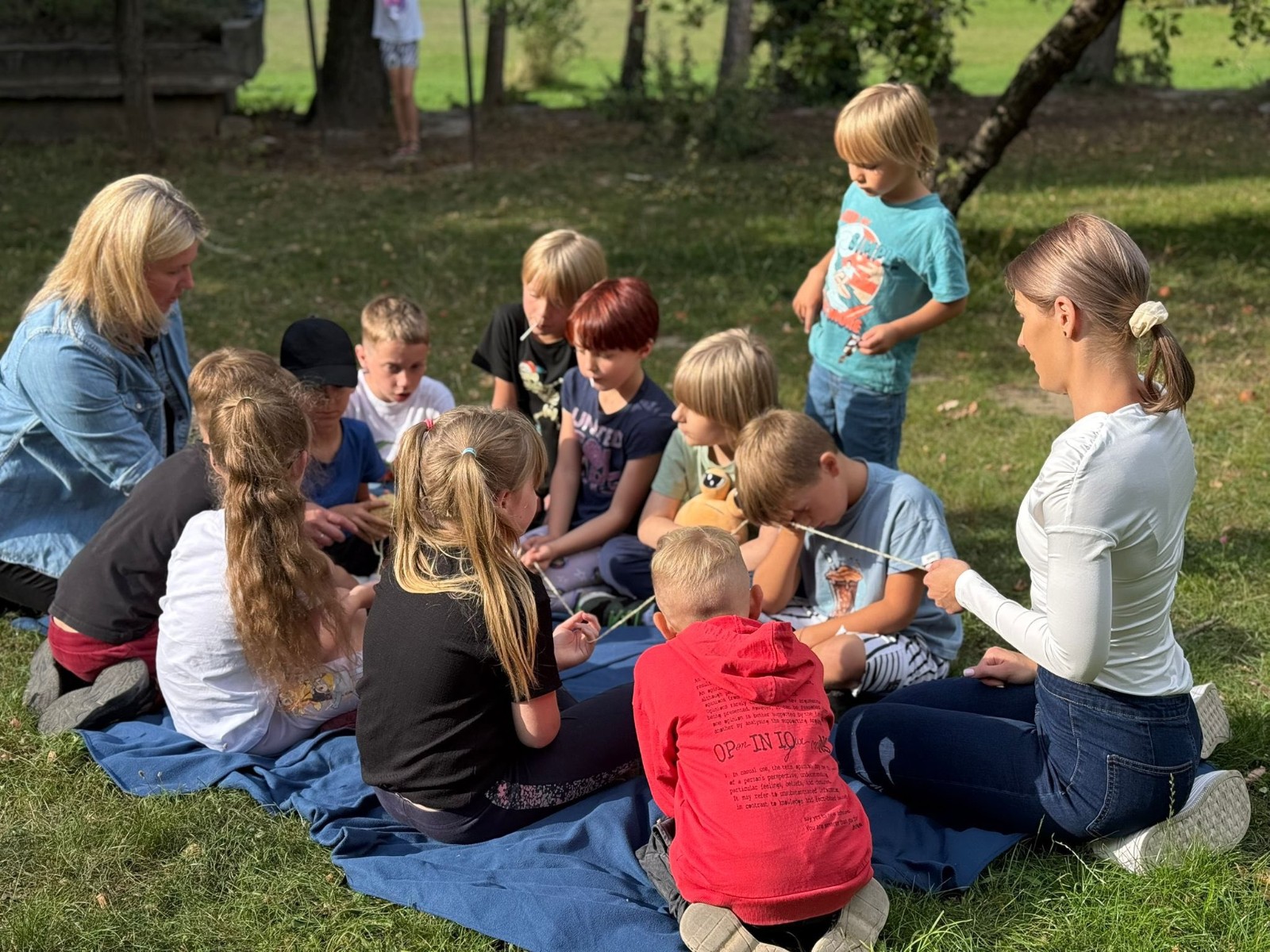 Dzień pierwszy upłynął w niezwykłej atmosferze – zajęcia odbywały się wśród drzew owocowych: śliw, grusz i jabłoni. Naturalne otoczenie sprzyjało budowaniu relacji i poczuciu wspólnoty. Był to dzień pełen zabawy i integracji, w którym dzieci, rodzice i nauczyciel mogli lepiej się poznać. Tak właśnie wygląda codzienność w naszej szkole – blisko natury, w atmosferze współpracy i życzliwości.