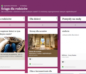 Padlet – rodzaj wirtualnej tablicy. Jej celem jest gromadzenie w jednym miejscu materiałów cyfrowych. Jest polska wersja językowa. Bezpłatna wersja pozwala na stworzenie kilku tablic. Przykład: Ściąga dla rodziców