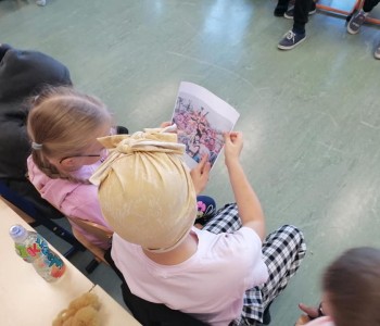Mówiła o zwyczajach i tradycjach, przedstawiła ukraiński alfabet, przeczytała fragment bajki, a na koniec poczęstowała nas tradycyjnym ukraińskim przysmakiem. Dzięki temu spotkaniu mogliśmy zobaczyć i poczuć smaki Ukrainy.