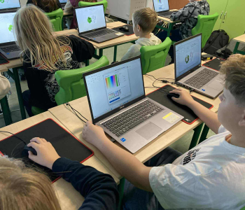 Uczniowie samodzielnie wykonali cyfrowe prace plastyczne, w których zastosowali barwy podstawowe i pochodne, ucząc się jednocześnie obsługi programu graficznego oraz zapisywania własnych plików.