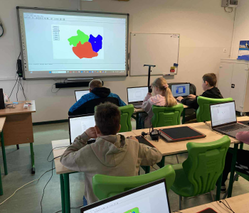 Podczas zajęć uczniowie połączyli programowanie i sztukę, tworząc w środowisku Logomocja własne, interaktywne narzędzie do malowania – miniaturowy „Paint”. Poznali sposób działania żółwia rysującego, programowali zmiany koloru, grubości pisaka oraz narzędzie do ścierania.