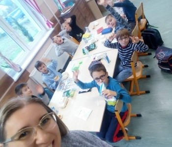 Klasa 6 świętowała grą terenową w ogrodzie szkolnym i słodkim poczęstunkiem dla wszystkich.