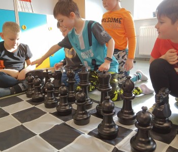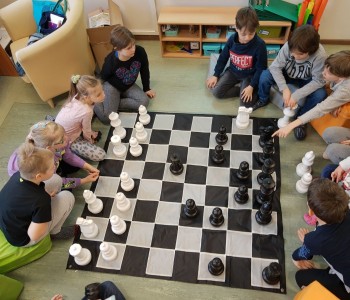 Miłą niespodzianką było otrzymanie w konkursie "Za kasztany i żołędzie wiedzy ci przybędzie" szachów plenerowych. Gra na takiej szachownicy to nie lada wyzwanie. A jeszcze większe, gdy gramy drużynowo - wszystkie ruchy ustalamy wspólnie i dyskutujemy dlaczego tak, a nie inaczej. "Przecież skoczek nie rusza się w ten sposób, zobacz - tu będzie szach" - dzieci najlepiej uczą się od siebie nawzajem. A gdy uczą się podczas zabawy, w sprzyjającej atmosferze i po zaspokojeniu potrzeb - uczą się szybko i trwale!