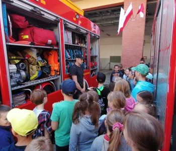 Dowiedzieliśmy się co znajduje się w wozach strażackich, w jakich sytuacjach strażacy pomagają, zwiedziliśmy wóz strażacki oraz mogliśmy podziwiać zjazd strażaków na rurze. ???