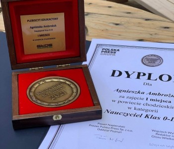 Tytuł NAUCZYCIEL NA MEDAL 2021 zdobyła Pani Agnieszka Ambrożuk - nauczycielka edukacji wczesnoszkolnej.