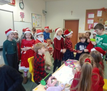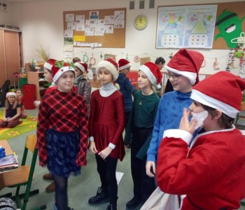 Pomocnicy Świętego Mikołaja z kl.5, w ramach programu SZKOŁA DOBRA przygotowali niespodziankę dla wszystkich.