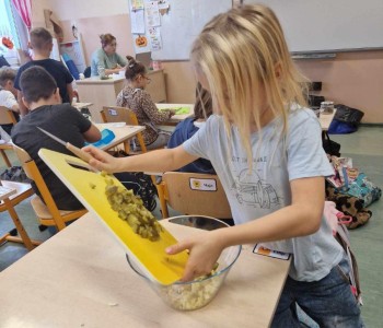 Następnie uczniowie przystąpili do przygotowywania potrawy. W tym roku tematem zajęć były sałatki warzywne. Dzieci dowiedziały się, jak wybrać odpowiednie warzywa, jak je obrać i pokroić, a także jak je doprawić.