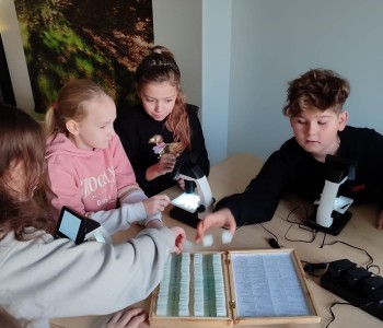 Dodatkową atrakcją było obserwowanie skał i minerałów, a także tego, co aktualnie było pod ręką. Uczniowie mogli sami wybrać obiekt, któremu chcieli dokładniej przyjrzeć się.