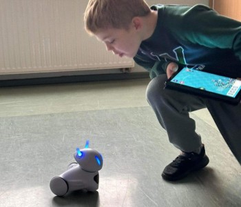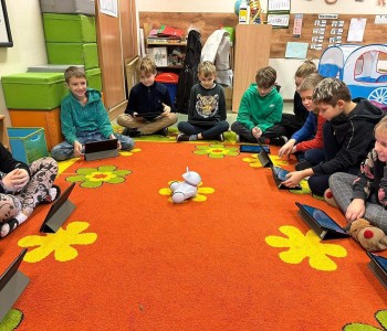 W klasach 1 i 3 odbywają się zajęcia z robotem Photon.
