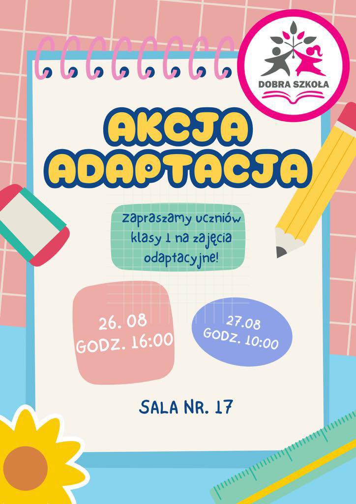 Serdecznie zapraszamy przyszłych pierwszoklasistów na zajęcia adaptacyjne, które odbędą się w naszej szkole w terminach: