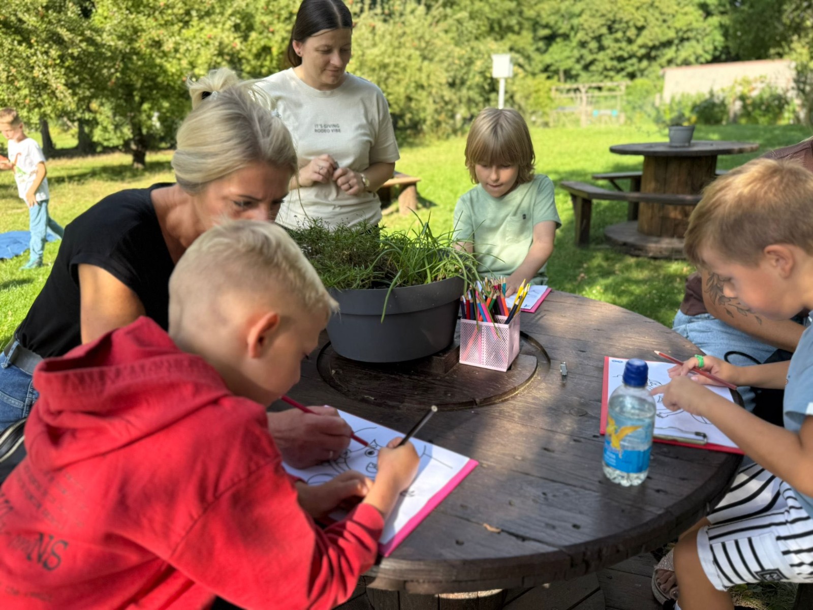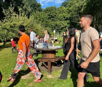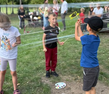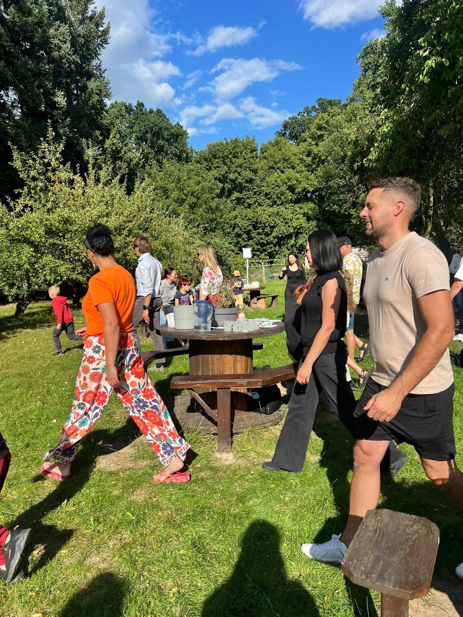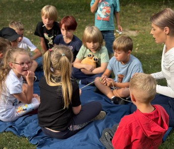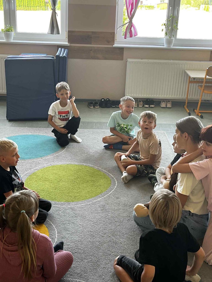 Dzień pierwszy upłynął w niezwykłej atmosferze – zajęcia odbywały się wśród drzew owocowych: śliw, grusz i jabłoni. Naturalne otoczenie sprzyjało budowaniu relacji i poczuciu wspólnoty. Był to dzień pełen zabawy i integracji, w którym dzieci, rodzice i nauczyciel mogli lepiej się poznać. Tak właśnie wygląda codzienność w naszej szkole – blisko natury, w atmosferze współpracy i życzliwości.