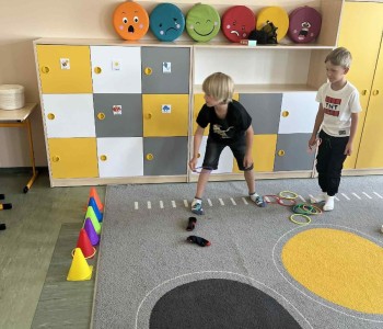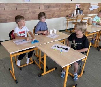 Dzień drugi był dla dzieci pierwszym krokiem w szkolne mury – nasi przyszli uczniowie zasiedli w prawdziwej klasie. Był to mały „test” na ucznia klasy 1 i wszyscy zdali go śpiewająco! Podczas gdy najmłodsi poznawali szkolne zwyczaje i oswajali się z nowym miejscem, ich rodzice uczestniczyli w wartościowym szkoleniu poprowadzonym przez dr. inż. Franciszka Wyrwę.